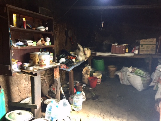 Living essentially in the dirt, cooking over an open fire and breathing in the smoke daily has probably not helped their health either. They could have a gas stove, but again, getting gas tanks up the hill could be a problem. Also, a fire provides ambient heat for their home, which a stove doesn't do. Obviously obtaining wood is cheaper. It also makes it easier to burn the little garbage that they create.